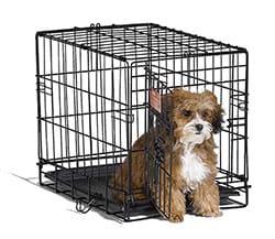 Any crate you purchase should be large enough for your puppy to stand up, turn around and lie down in. A crate that is too large will allow your dog to eliminate in one part and sleep in another, which can create problems for house training. If you purchase a dog crate that will fit your puppy when he is full-grown, you should also purchase a crate divider with which you can create a smaller space while your puppy is little.![]()